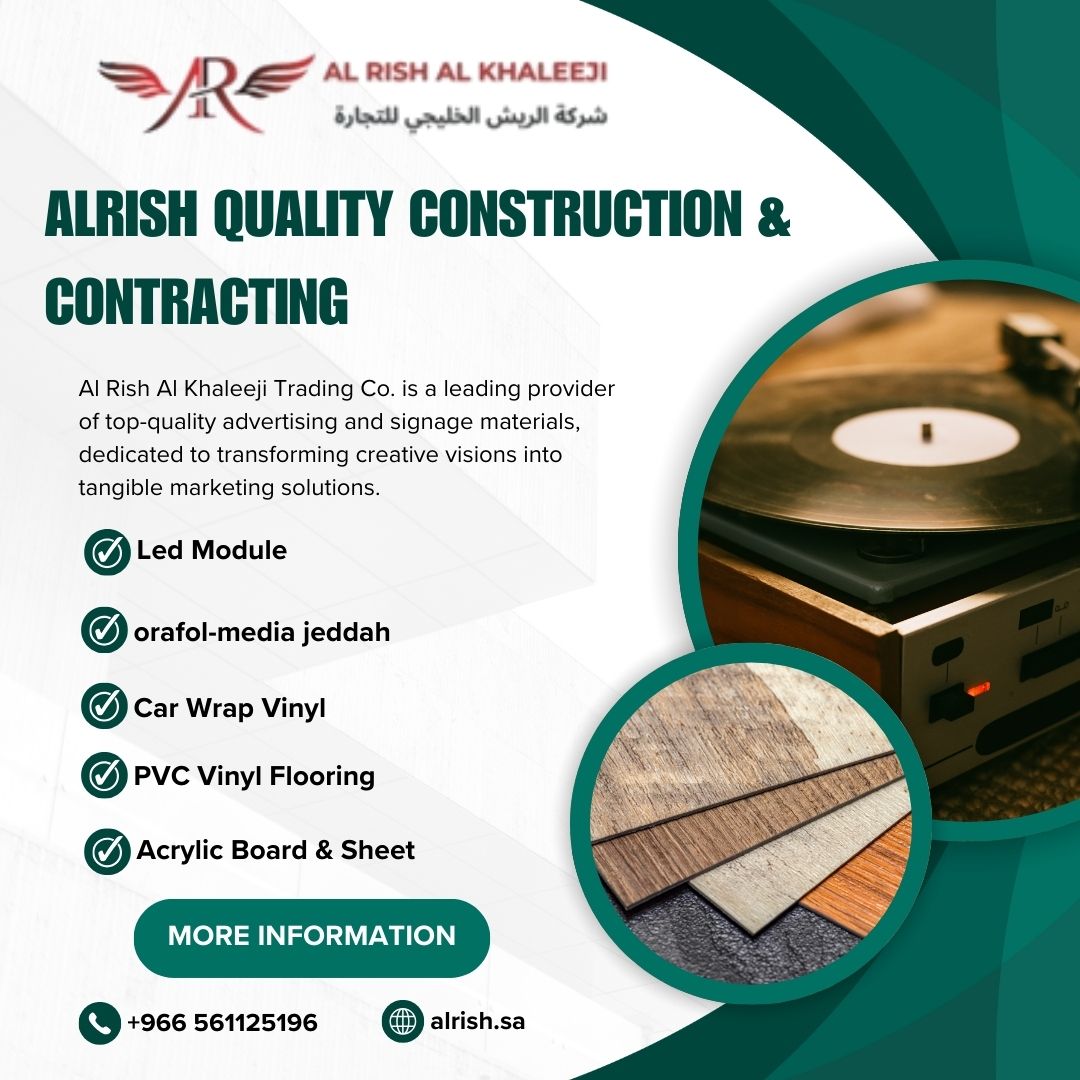 Al Rish Al Khaleeji Trading Co. is a leading provider of top-quality advertising and signage materials, dedicated to transforming creative visions into tangible marketing solutions. Established with a commitment to excellence, we have been serving clients across diverse industries with a comprehensive range of materials that enhance brand visibility and communication.
